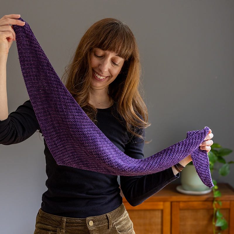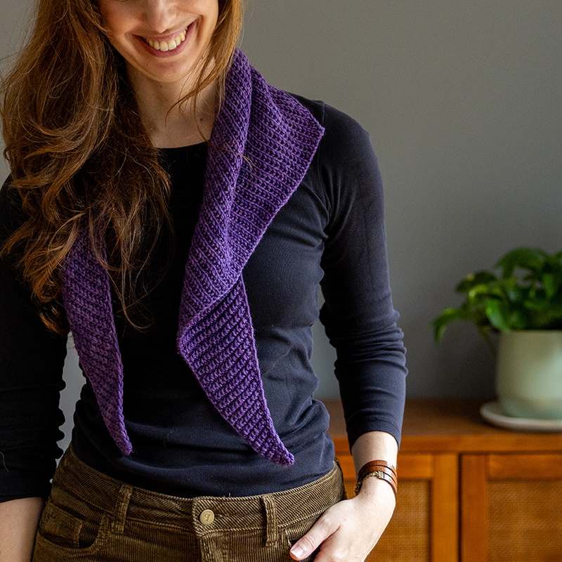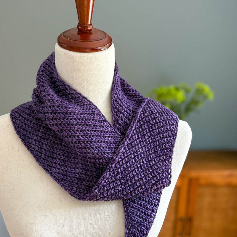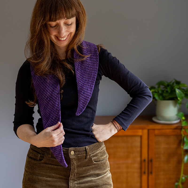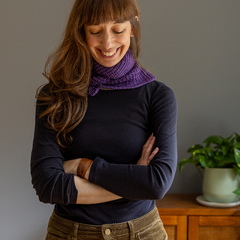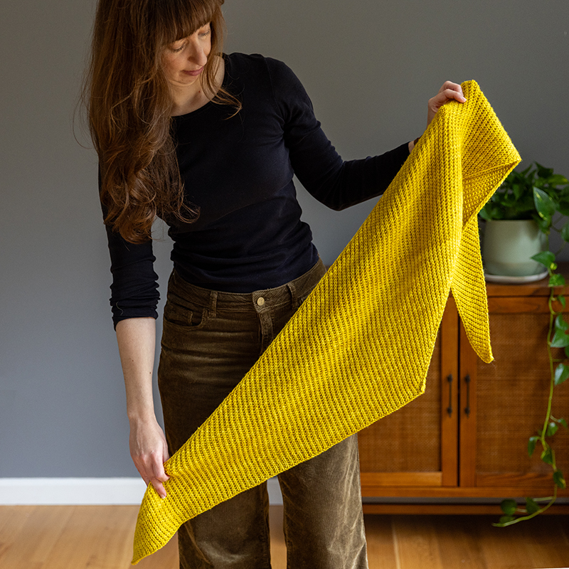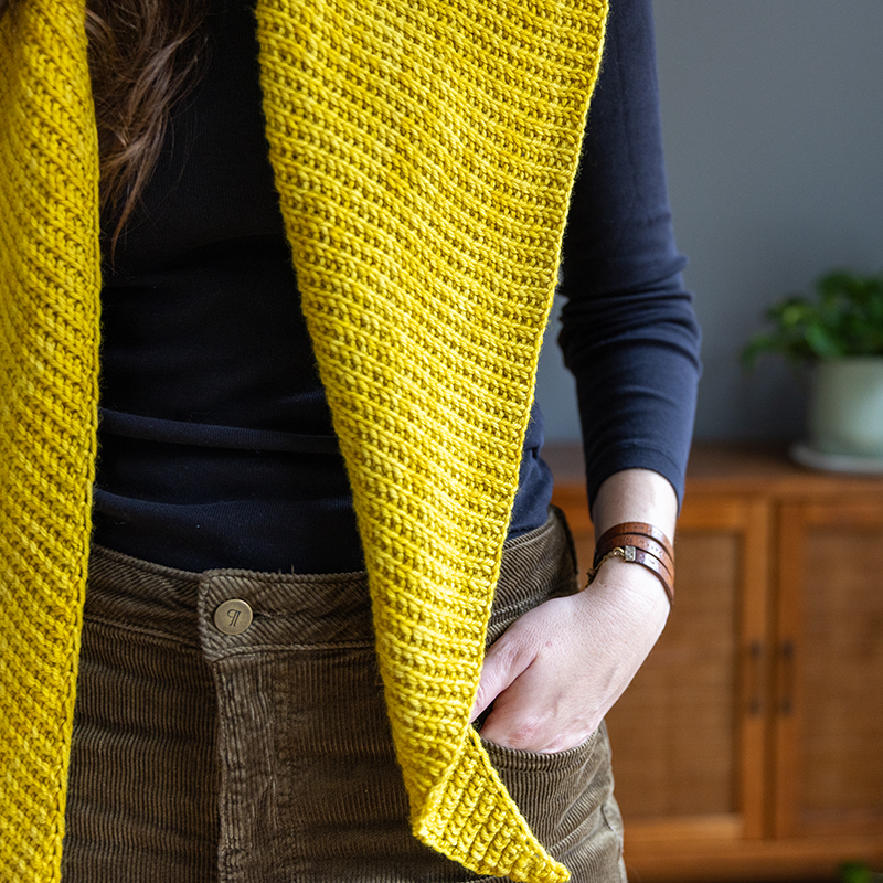 Sidekick is an asymmetrical scarf (in 2 size options) with a simple slip-stitch pattern that’s both approachable and engaging to knit (and looks great on either side). It’s the kind of project you can take anywhere – just like a true sidekick, it’s always ready to come along for the ride!